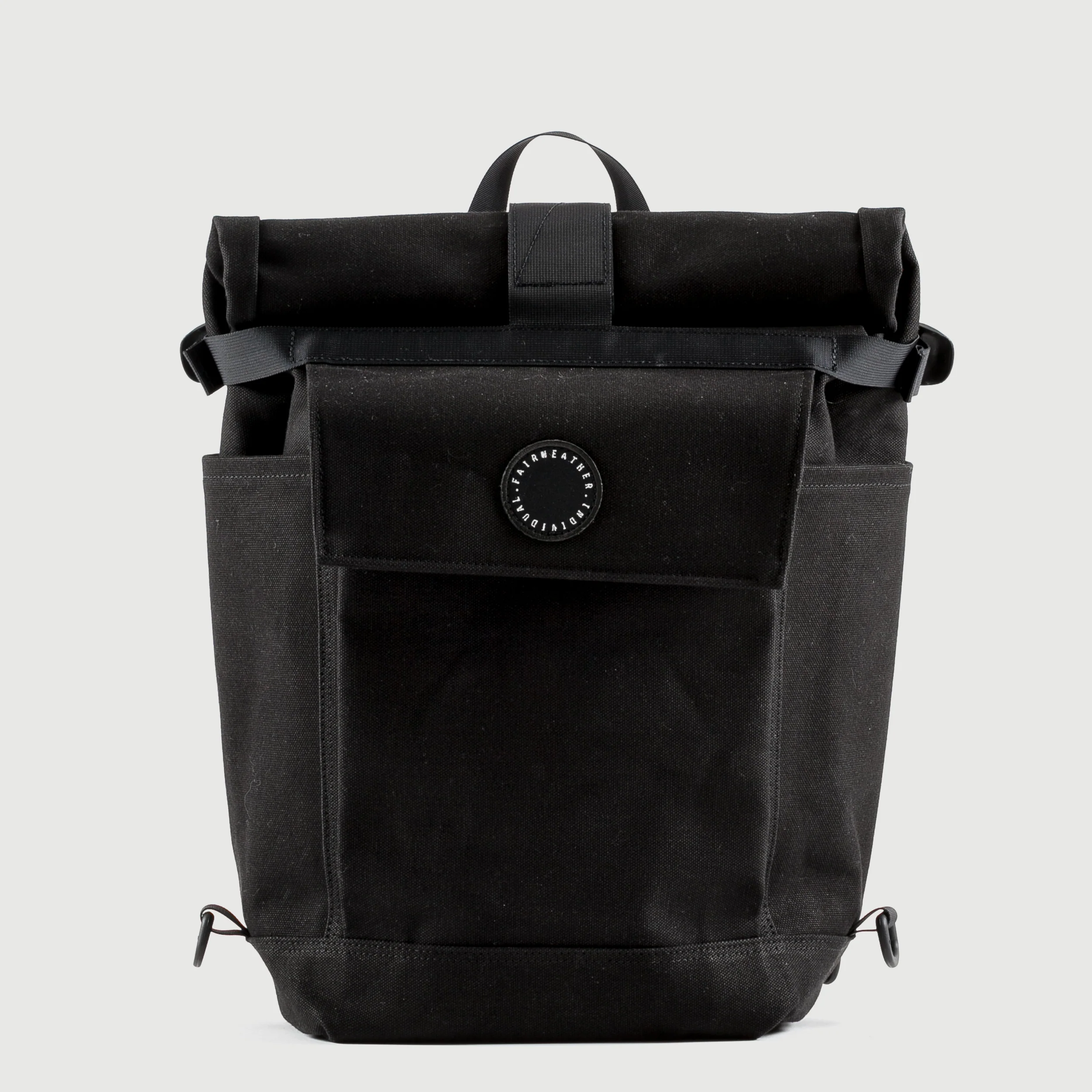 Made from heavyweight cotton canvas with deep side pockets and one large front pocket, the roll top opening allows easy access to the main compartment. Expanding quickly in size, the bag opens up to a waterproof inner liner.