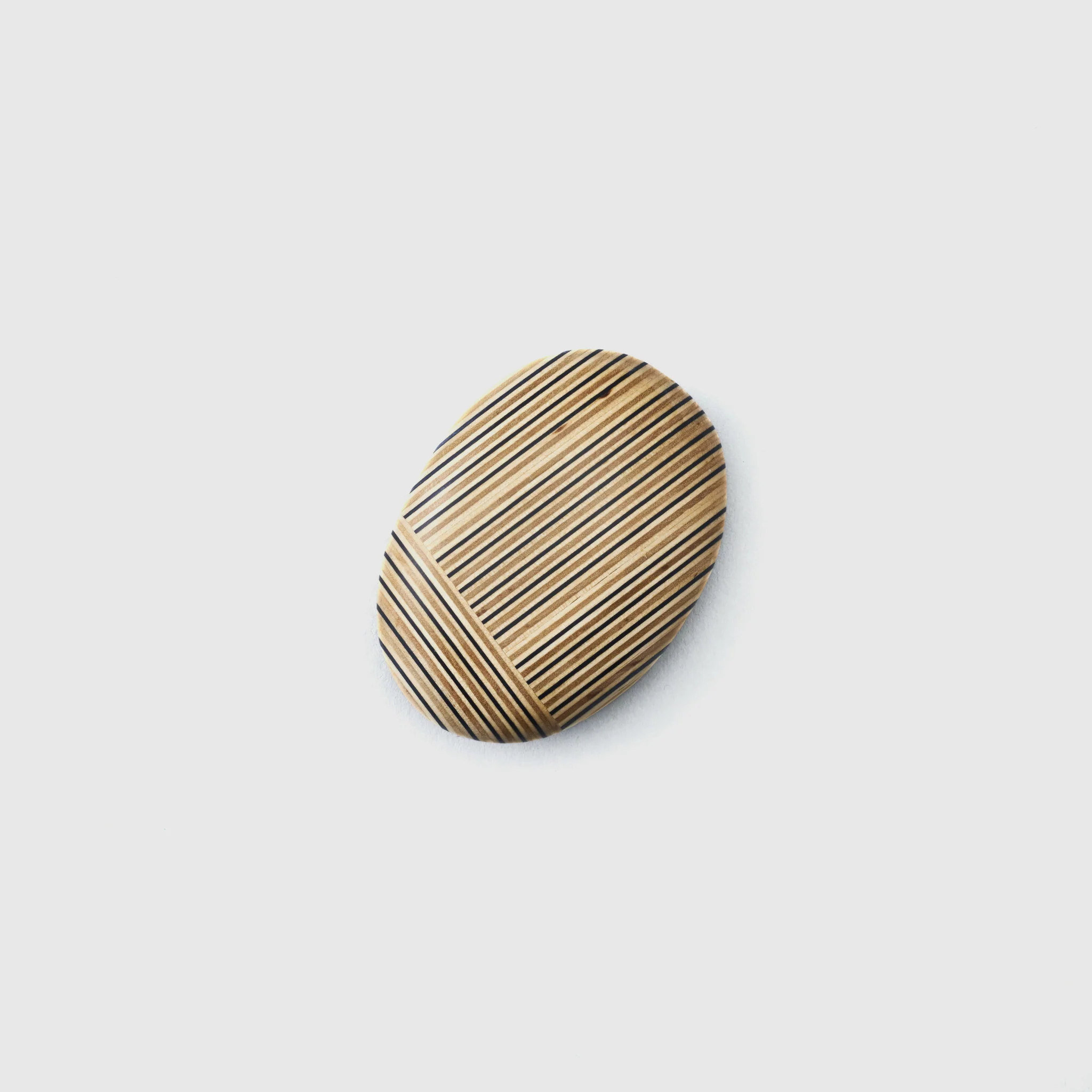 Pebble like paperweights made of 'Paper-Wood', an innovation from Takizawa Plywood combining recycled paper and plywood. Each piece is handmade (so will vary slightly) in the organic form of stones and with the natural feel of wood. As much a useful accessory as a beautiful, tactile object, to keep on your desk.