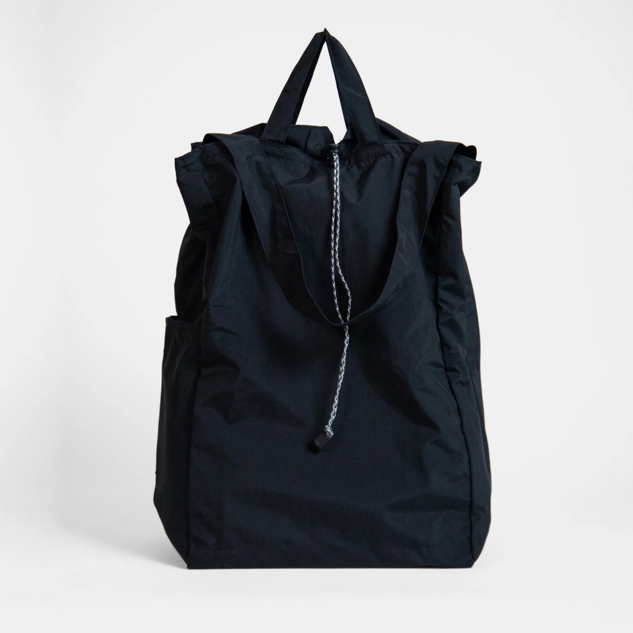 A super compact, lightweight, 3-way, packable bag - wear as a backpack, shoulder bag or carry with the handles. The fabric is made of nylon from Ishikawa Prefecture, and has been treated to be water repellent for use in light rain.
