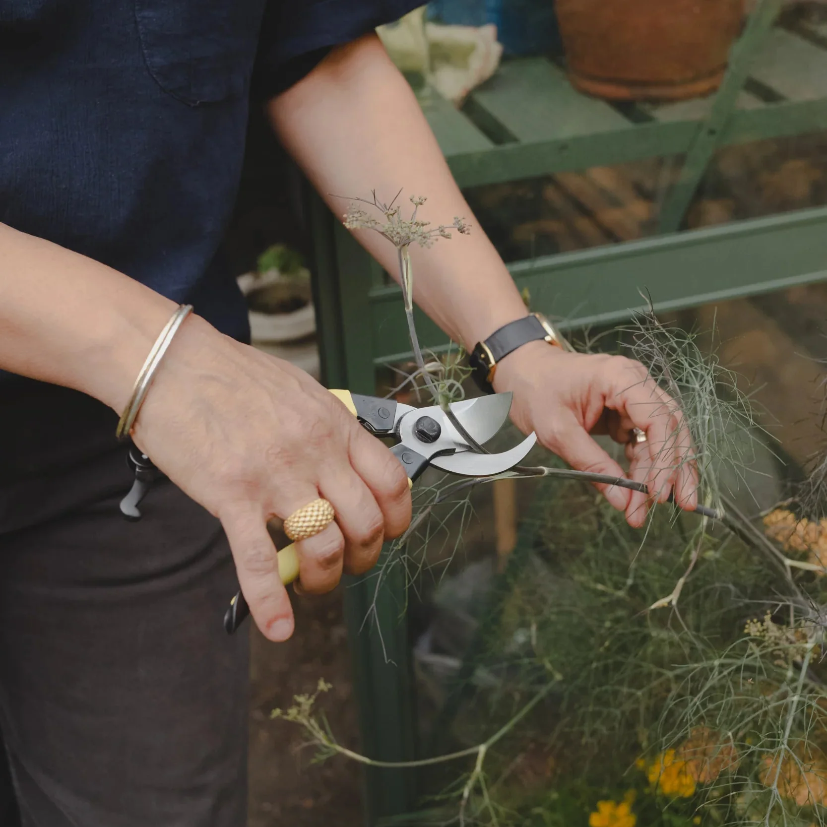 Standard issue in Japan, these are considered the every day, go-to choice for pruning. The chunky catch at the bottom has a crisp action that’s easy to use, even with cold wet hands or muddy gloves, and the spring is well secured, never accidentally popping out. They provide a clean and efficient cut and have yellow grips for easy spotting in the garden.