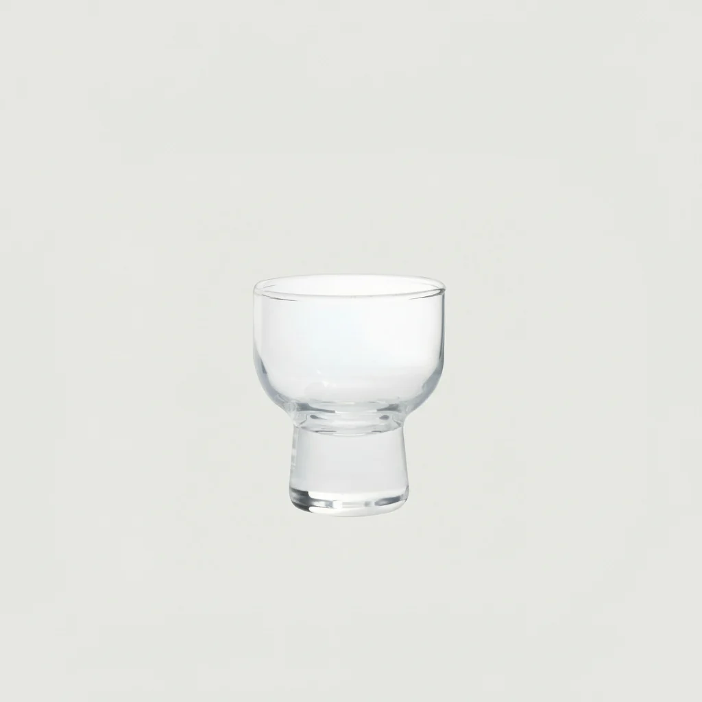 Sori Yanagi was commissioned to design a sake glass (the “Yanagi Seishu Glass”) in the 1970s for the Japan Sake and Shochu Makers Association. Now widely used in sake competitions, it features a simple inverted bell shape with a stable base. The form enhances aroma and flavor, while the thick, rounded rim offers a smooth feel. Made of soda glass by Toyo-Sasaki Glass, its small size helps preserve temperature, and it can also be used for other spirits or desserts.
