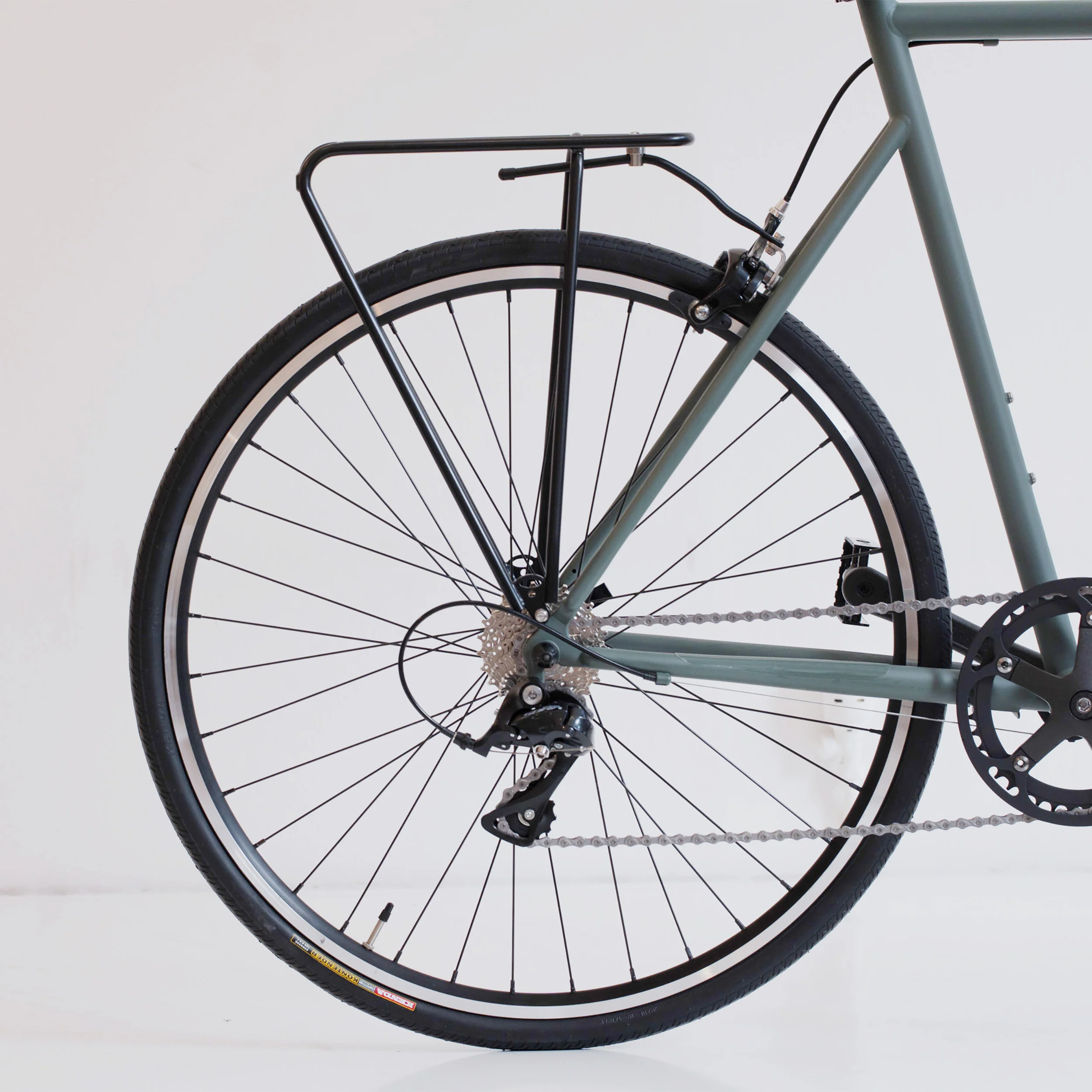 A lightweight but strong rear rack with a minimal look and a matt black finish that works well with the tokyobike Sport model.